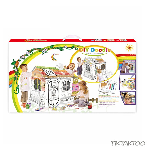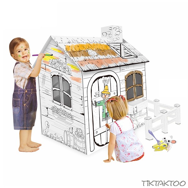 The cardboard house is lovingly pre-designed and invites you to paint it colorfully.