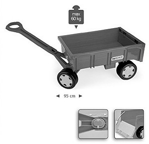 Our handcart safely accompanies children aged 12 months and older through imaginative play worlds, promoting motor skills, coordination and spatial awareness in a playful way. Made from high-quality, weatherproof plastic, it combines ease of use with robust durability. With a load capacity of 60 kg, the cart is perfectly suited for growing children's hands and will accompany them for a long time as they build, pull and transport things together. The fresh colours invite children to explore. Thanks to its convertibility, the handcart can be used flexibly as a trailer with a drawbar (compatible with all Gigant models) or as a handcart with a pull handle – ideal for exploring construction sites, garden obstacle courses or adventure trails. The trolley trailer fits the Wader Giant Tractor Bulldozer and the Giant Tractor Dumper, opening up further worlds of play. The trailer strengthens self-efficacy, promotes teamwork when loading and pulling, and encourages a sense of responsibility when handling toys. Safe, durable and versatile – a companion that makes children's dreams come true.