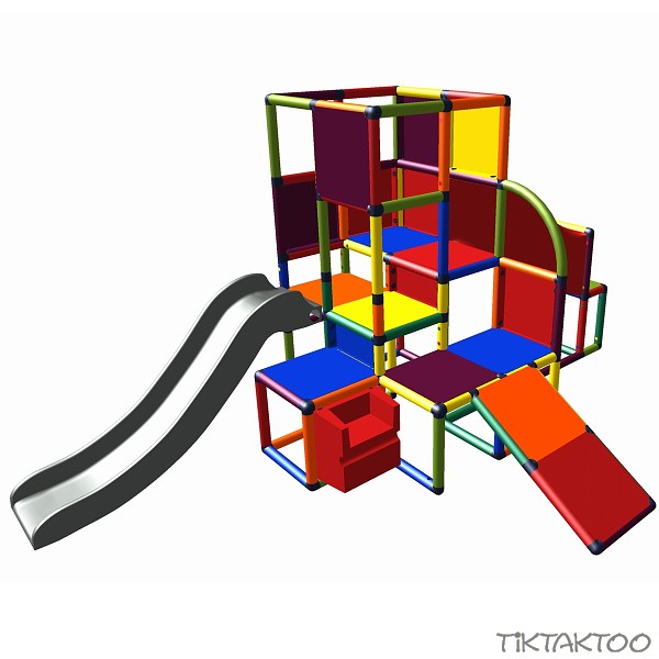What a feeling to have climbed the tower and to be at eye level with the adults. This colorful play tower has a moveandstic slide and a toddler slide for happy slides.