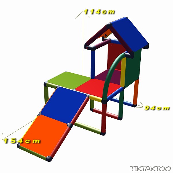 This colorful house offers the youngest a lot of fun, trains their motorical skills and allows trying out new possibilities all the time. It has a toddlers slide which invites for sliding, tops off the playing fun and keeps the child's interest awake. The model can be changed with single items and new ideas. With some fanatsy can the shelf be changed into a cuddling cave or even a whole climbing park.